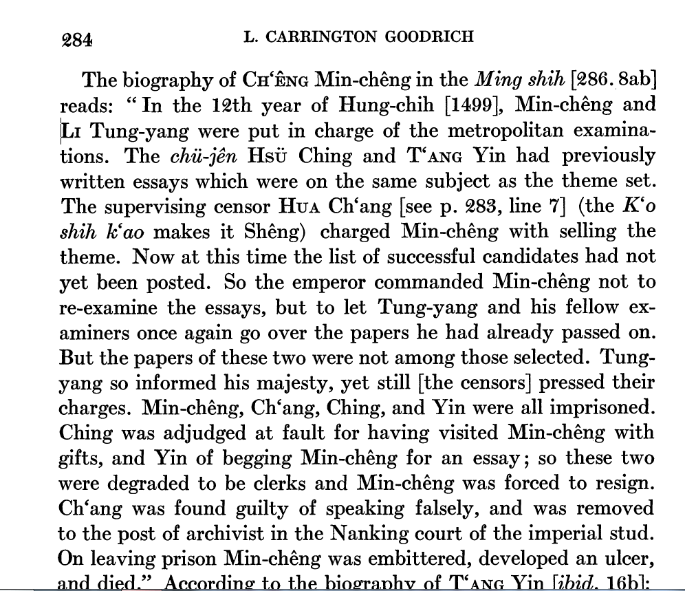 Source: Ku Chieh-Kang and Goodrich, L. Carrington, “A Study of Literary Persecution During The Ming” Harvard Journal of Asiatic Studies, Vol. 3, No. 3/4 (Dec., 1938), pp. 254-311